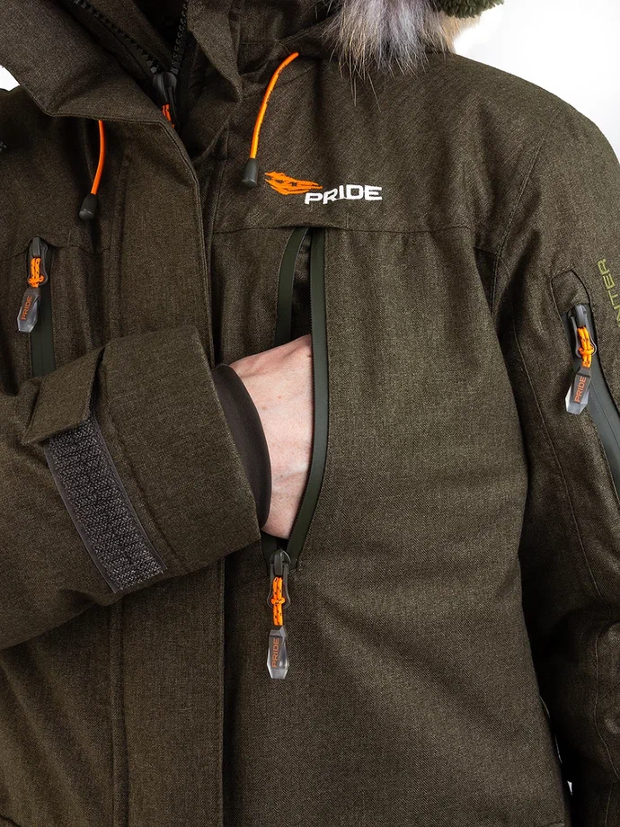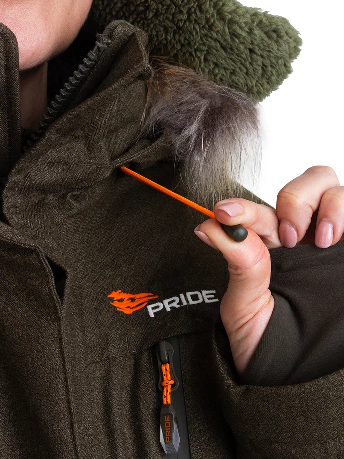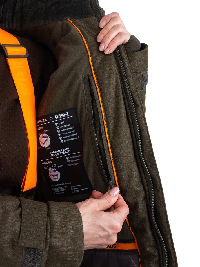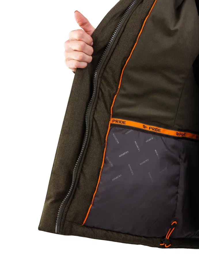 Костюм PRIDE Артемида -35 от NOVATEX, состоящий из удлиненной куртки с капюшоном и брюк с высокой спинкой- стиль, комфорт и защита для современных женщин на охоте или на любой другой активности!