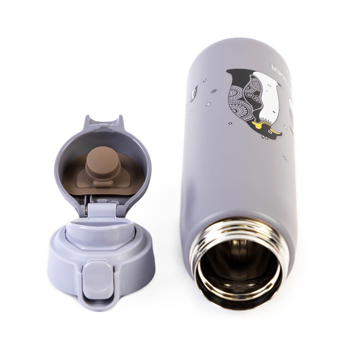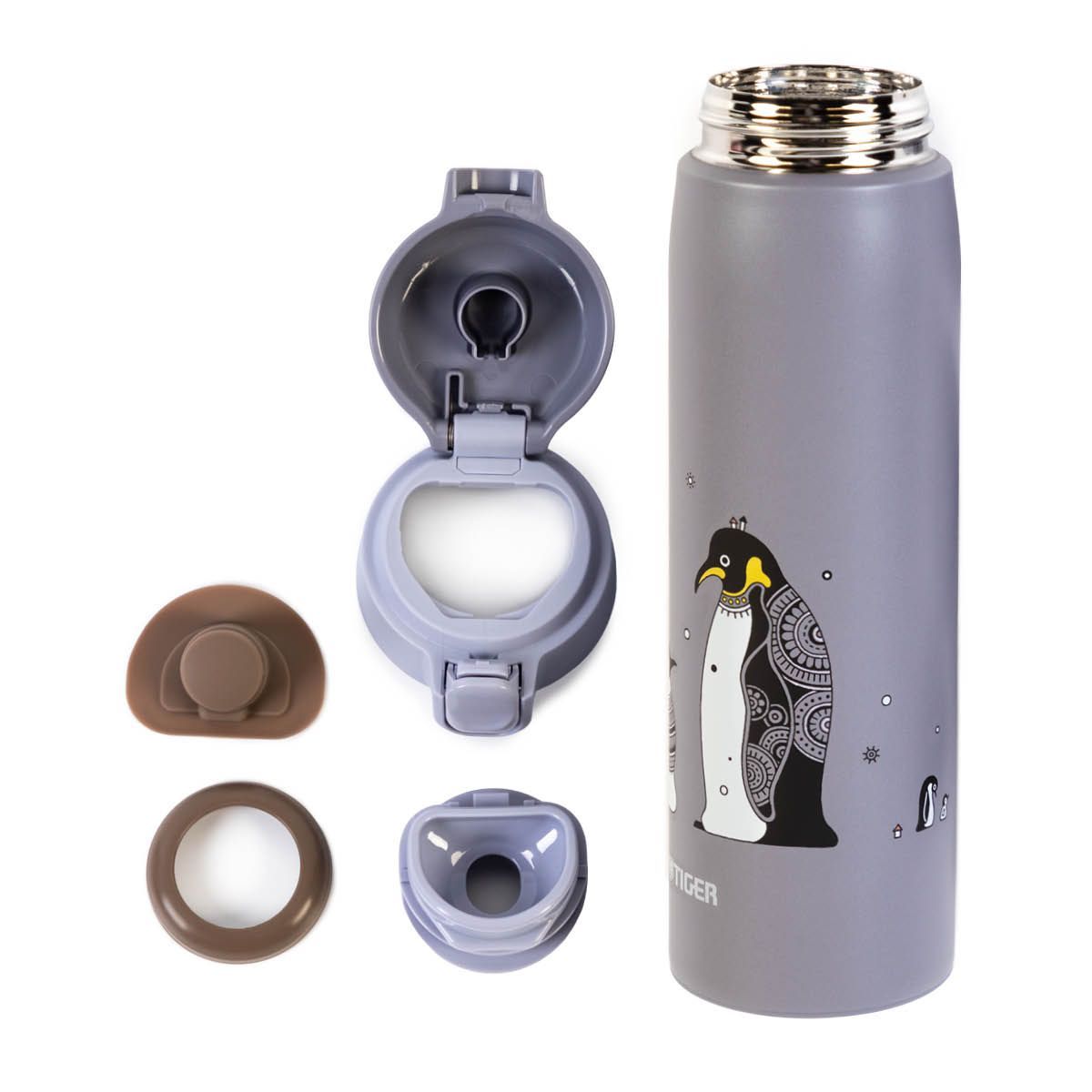 Термокружка Tiger MCT-A050 Penguin легко открывается одним движением пальца. Чтобы избежать протекания жидкости, используется система автоблокировки. Удобное горлышко позволяет пить во время движения.